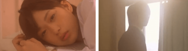 Suddenly, a hand reaches down to help her up. She sees that the figure is wearing a boy’s uniform, but her vision is too blurry to see his face. She takes his hand and he slowly helps her up the stairs to the nurse’s office to lay down. She sees him talking to the nurse, but still can’t really see anything but his back.