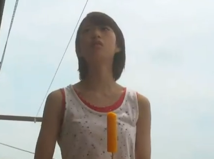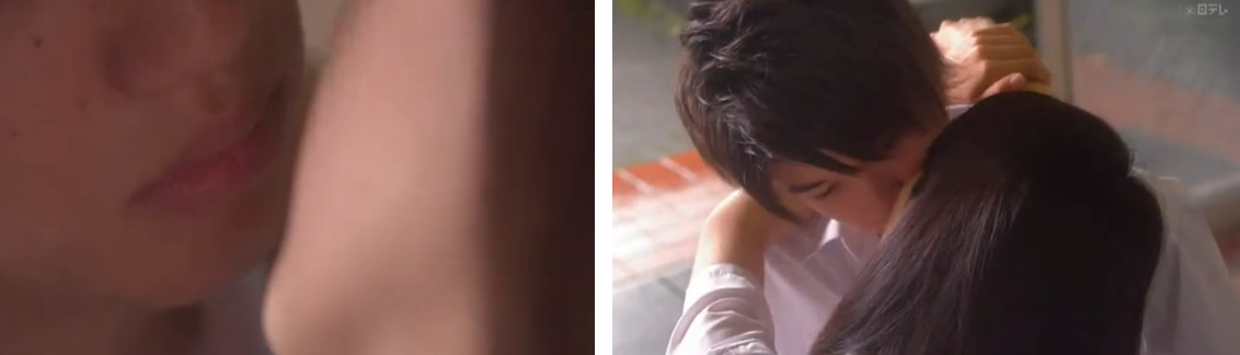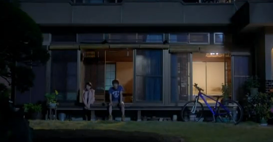 Back to the present scene, two boys come to see her while she’s sitting outside with her popsicle on her balcony. It’s Souhei and… to her surprise… the boy she saw kissing that girl near the lockers. He’s introduced as Katagiri Hayato. Hayato bows and, though he seems quiet, he doesn’t seem like a bad person. When Souhei asks if they know each other, Hayato denies it.