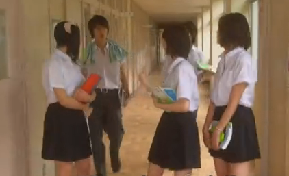 Next scene, Miku is walking with her friends, when suddenly some boys run up to them calling her last name. They ask her if she knows a boy named Souhei.