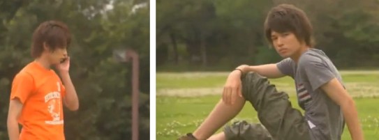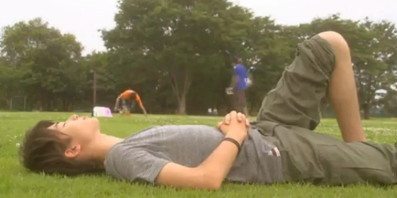 Hayato himself is laying in the grass on the sidelines.