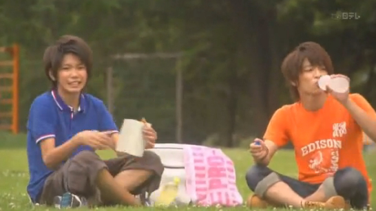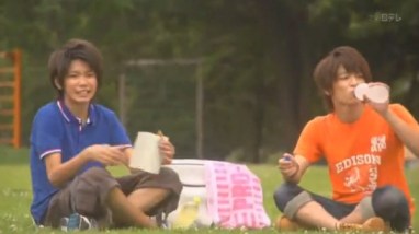 Souhei and Kou take a break. Kou brings up how Hayato has someone he likes and then asks Souhei whether he thinks Hayato will really be able to fall in love, since he puts a wall up between himself and other people.