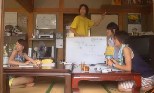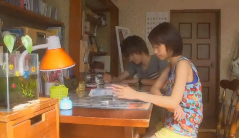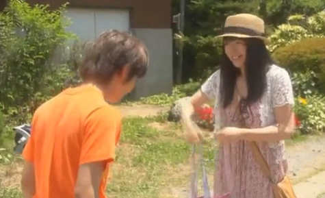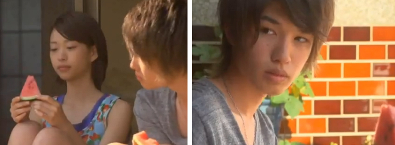 Ozawa shows up with a watermelon. Souhei tells her that she should have told him he was coming so he could pick her up at the bus stop. She tells him that she wanted to surprise him, (she’s always wanting to surprise him like that…).