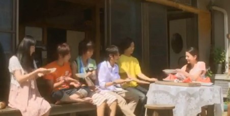 Miku’s mom and Kiyoko serve the watermelon to everybody at the house.