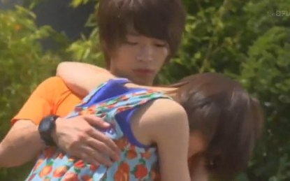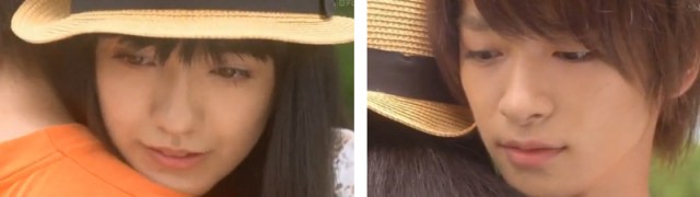 Hayato asks Ozawa what’s wrong. She looks like she’s going to cry, and then suddenly rushes over and hugs him. He looks fairly shocked.