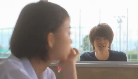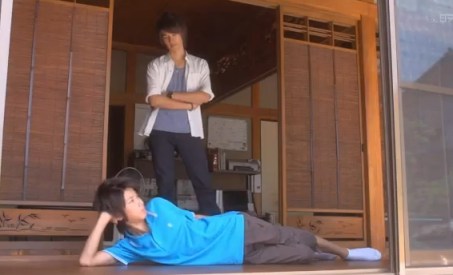 In another flashback scene Souhei is obviously sad, but tries to greet Ozawa cheerfully anyway.