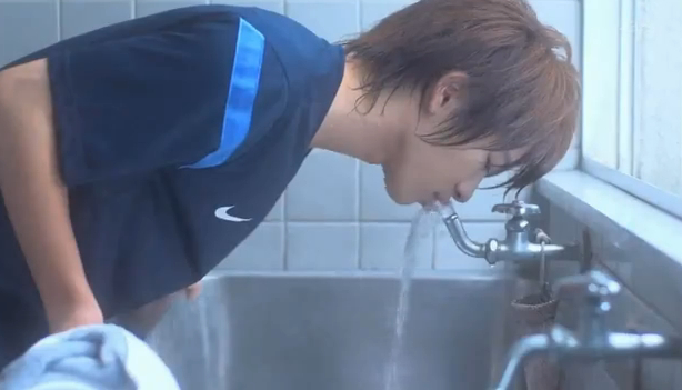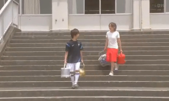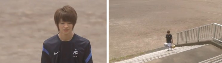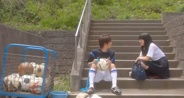 While cleaner soccer balls, his girlfriend Ozawa comes up and tells him that she’s going to watch him play even though it’s hot out.”