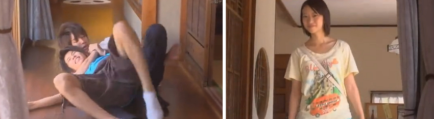 He starts playfully wrestling his younger brother. He stops when Miku walks in, but she’s amused and happy to see Hayato in high spirits.