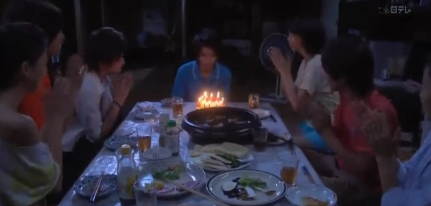 Kou gets his birthday cake, (he says it’s his first one), and blows the candles out.