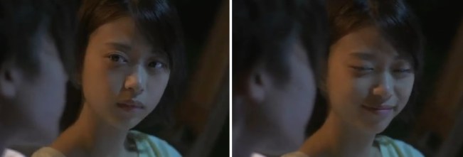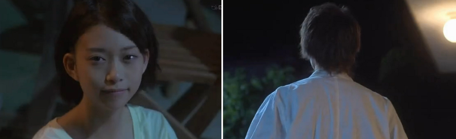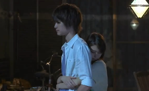 Back to Hayato and Ozawa, she finally pulls away. Looking up at him, she apologizes for her impulsive action.