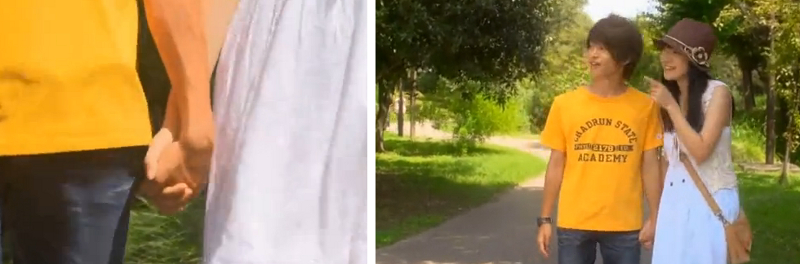Back to Miku and Hayato, they brush hands while walking. Hayato apologizes.