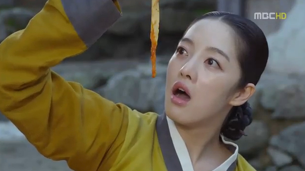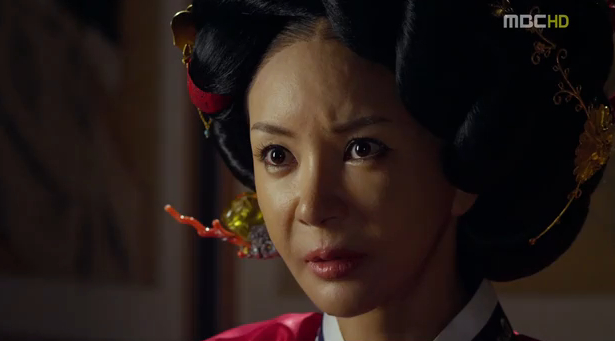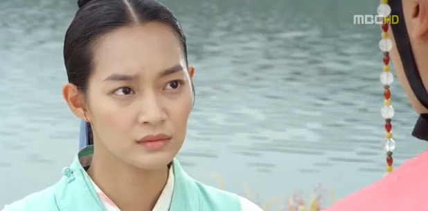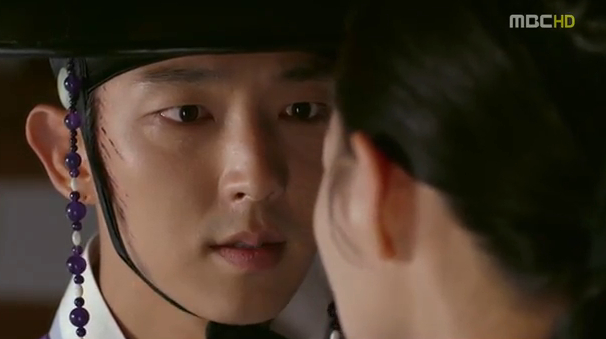 He gets angry and tells her she shouldn’t be here. Arang looks a bit shocked.