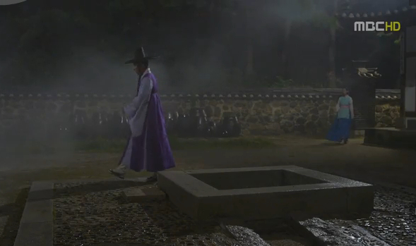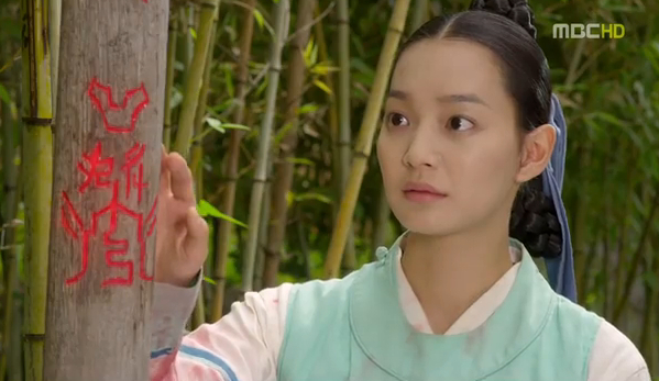Arang is going down the path. She about to touch a pillar with at seal on it when she runs into Lord Choi.