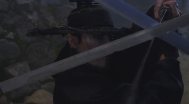 “It’s noisy,” says the lord. He commands that his henchman hurry up with whatever he’s doing to the kid’s father so he’ll go away. “What is he doing that I didn’t even command?” he complains.