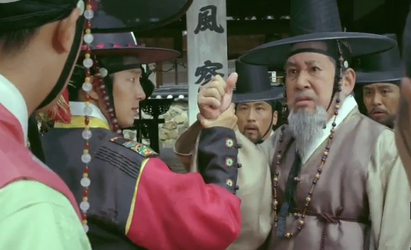 Meanwhile, Lord Choi’s henchman is beating a villager to find out why he was hanging around the magistrate’s office.