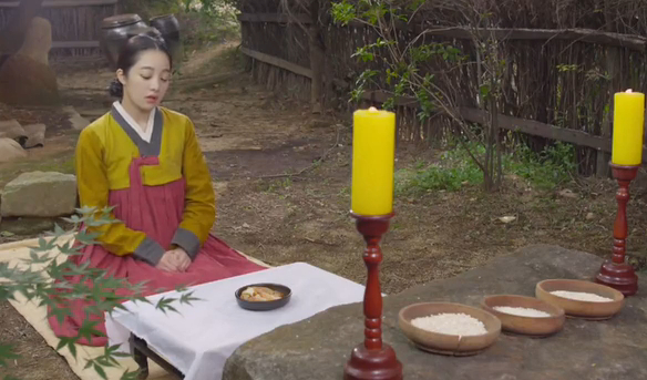 The shaman is setting up her offering of kimchi for her “strong General spirit” like usual, and remembers when the servant wiped her lips the other day.
