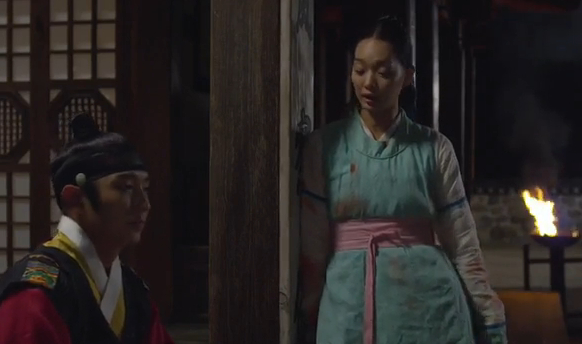 At the same time, Joo-wal rushes over and pulls Arang back.