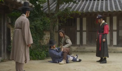Eun-oh’s servant takes the man and is helping him away when the henchman leers at Eun-oh and calls him a “slave bastard”.