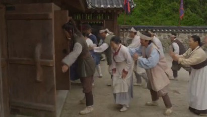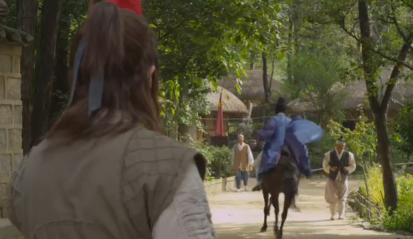 Eun-oh walks out the gate and sees his servant handing the man off to some villagers.