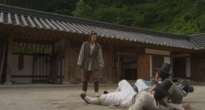 Eun-oh’s servant runs up and asks what happened. Seeing the henchman on the ground, he rushes over and grabs the villian.
