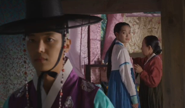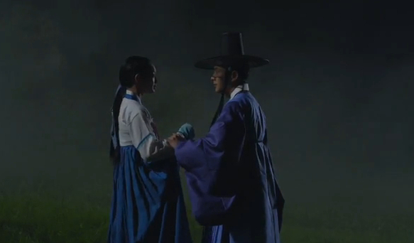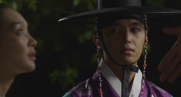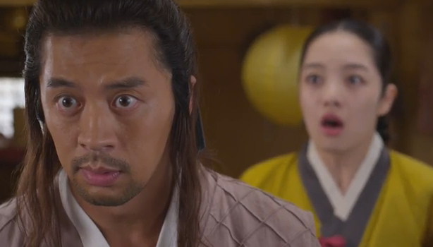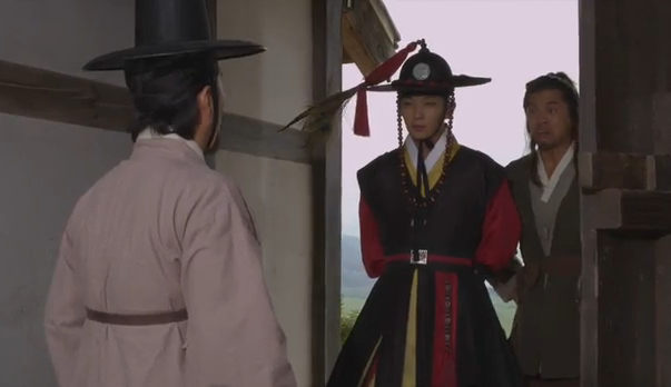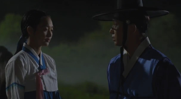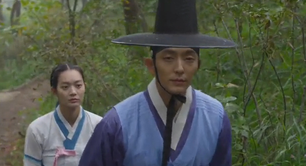 When he warns his servant that if anything happens to Arang it’ll be his (the servant’s) fault, the servant taunts him a bit about Arang’s relationship with Joo-wal.