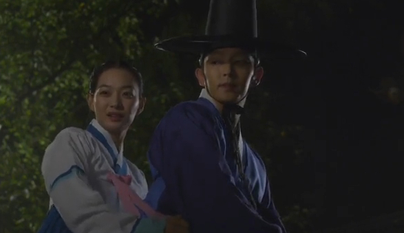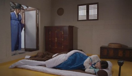 Eun-oh goes to Arang’s room and calls out “Memory-Loss”. He opens her doors and wakes her up. (Le gasp! Is that proper?)