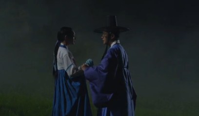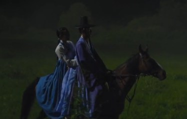 Eun-oh stops the horse and gets off. Arang walks up to him and asks if he’s worried about her.