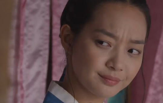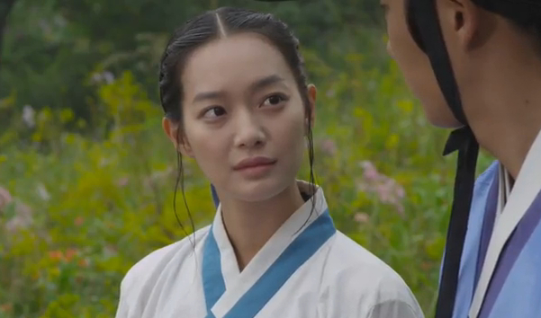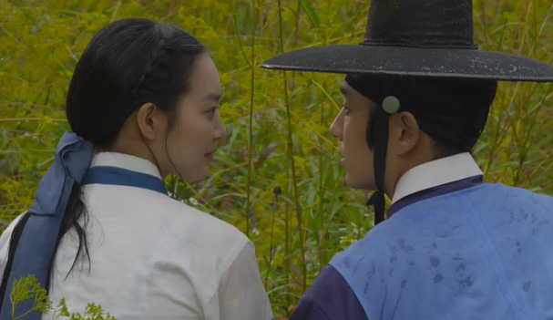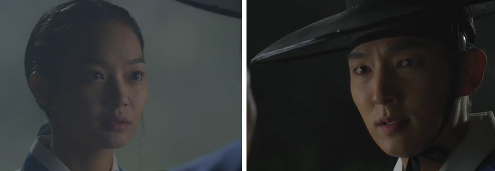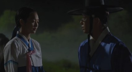 Then Arang says the magistrate is the type who doesn’t notice when other people are hungry if he’s not hungry himself… but then she stops and says to herself, “Wait a minute… won’t the magistrate have starved himself all day too? Could he have fainted?” Joo-wal stares at her.