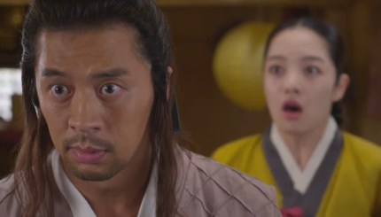 Eun-oh and his servant get to Lord Choi’s gate. Lord Choi’s servant stutters for his master.