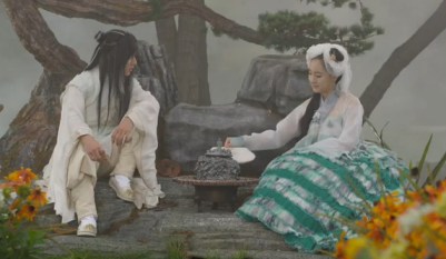 She talks about how she knew it would be difficult for him to captivate Arang. She asks him if Arang has another man and Joo-wal says that that’s not the case.