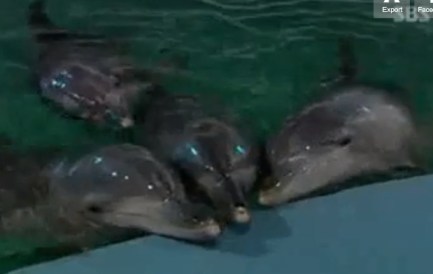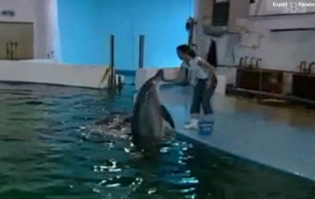 He tells the man that his ex-girlfriend was a dolphin trainer. He waited for her with a bouquet of flowers at her shows.