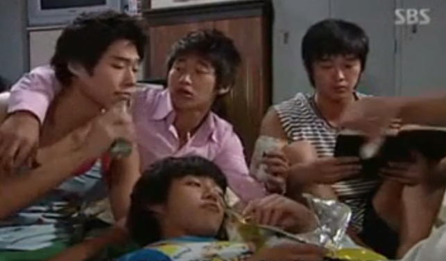 Tae-pong lays on his friends, saying he wants to sleep there.
