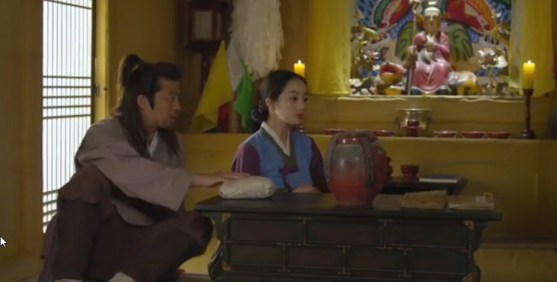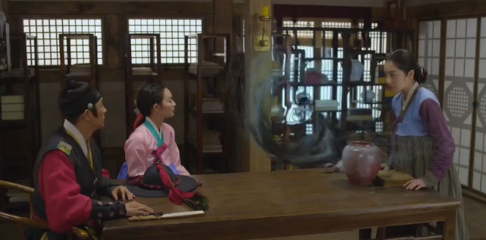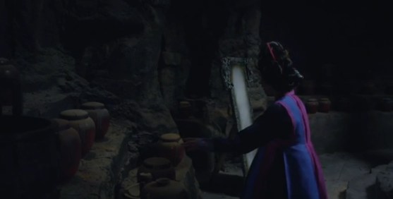 Eun-oh sneaks into the demon-woman’s house and takes a jar back with him. He can’t open it and the shaman knows nothing about it.