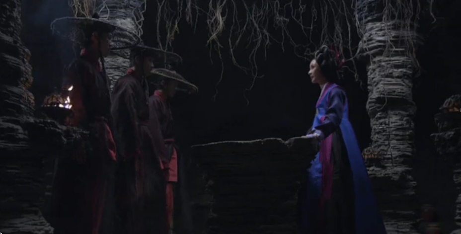 He tells her he thinks the magistrate did it, since he found the bone tomb and talisman before as well. Joo-wal mentions how Eun-oh came to see Lord Choi and she jumps on a person to blame.
